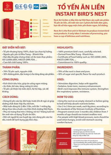 Instant Bird's Nest is made from pure bird's nests from Nha Trang - Khanh Hoa , known for its premium quality bird's nests. Combine with modern sublimation drying technology from the United States to dry the nests while keeping nutrients intact.