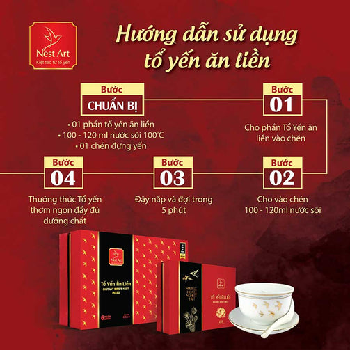 Tổ yến ăn liền là sản phẩm đặc biệt của Nest Art, giúp rút ngắn thời gian chế biến nhưng dưỡng chất của tổ yến vẫn được giữ vẹn nguyên.